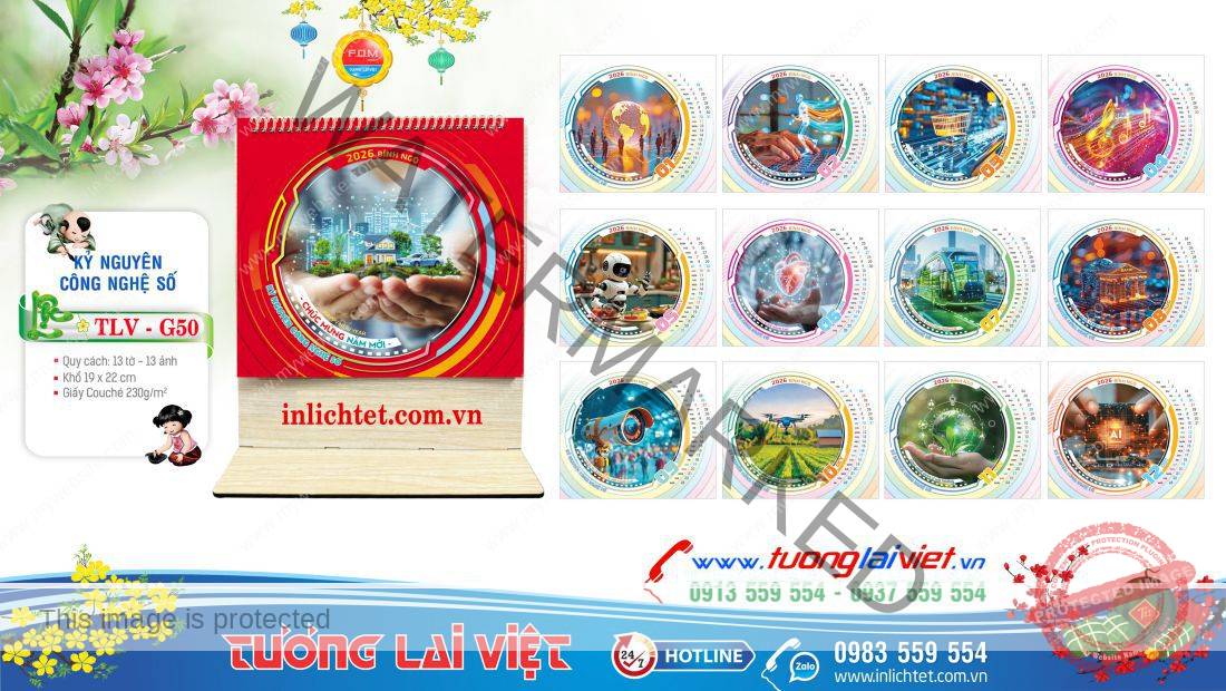 ➤ Mẫu Lịch Để Bàn Đế Gỗ bao gồm: